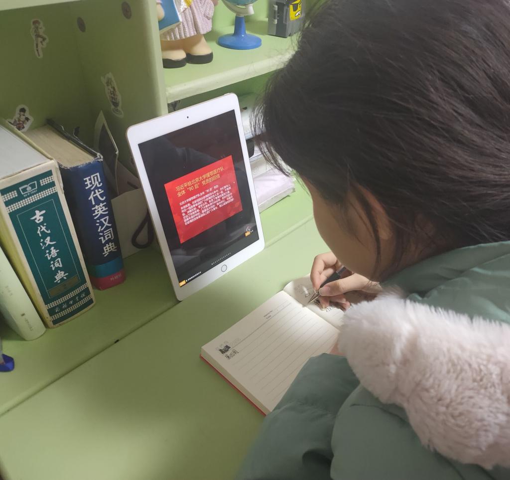 各班级通过视频会议、群组讨论等形式,开展了形式多样、内容丰富的“云团课”学习活动。2017级税收学三班积极组织同学们参与以“防疫情·暖人心·筑同心”为主题的线上学习活动。团支部书记王若曦首先带领大家学习了总书记的回信内容并分享了自己的感悟。她指出,习总书记的回信是对新时代的中国青年给予充分肯定,也是对广大青年的最大鼓舞。广大“90后”青年已从非典时期疫情中懵懂的见证者,蜕变为现如今疫情防控中的生力军。正是因为这种代际传递,我们的社会才得以生生不息。随后,大家纷纷表示认识到自己所肩负的“圆梦新一代”的时代嘱托,在未来的日子里要努力成为有理想、有本领、有担当的有为青年。最后,学习成绩名列前茅的于浩和王佳慧同学分享了自己的时间计划表和学习成果,勉励同学们珍惜宝贵的考研备战期。