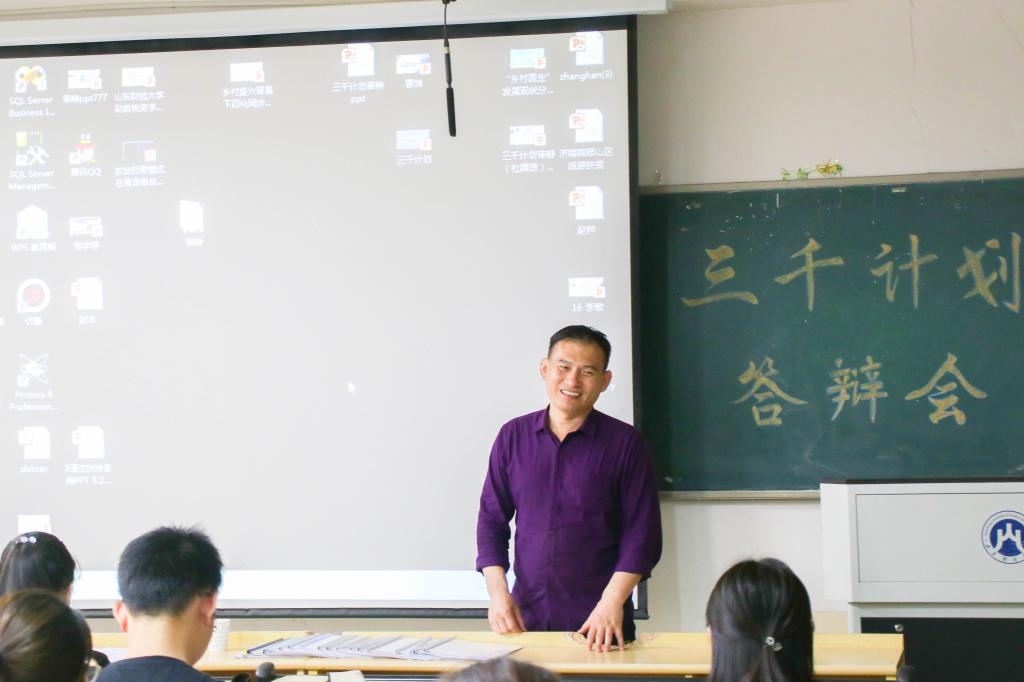 在第一场答辩会中,马恩涛教授表示,各团队要把搜集的网络资料加以归纳、整理,结合团队实际情况,把理论与实践相结合,最终形成团队报告。他指出,“三千计划”的初衷是希望同学们在校园学习同时走出象牙塔,走向社会、了解现实。马恩涛教授多次强调,调研只是“三千计划”的其中一环,前期更需要做大量、充分的准备工作,这些前期准备工作应该引起同学们的高度重视。最后他鼓励各团队要努力将自己的观点发展成熟,突出个性、勇于创新。