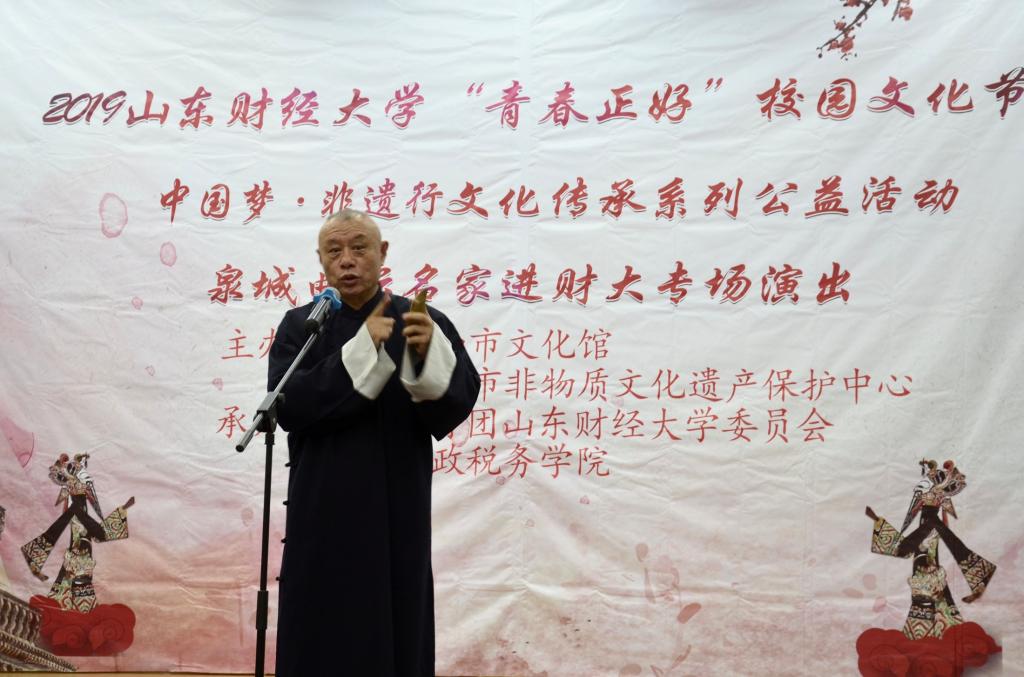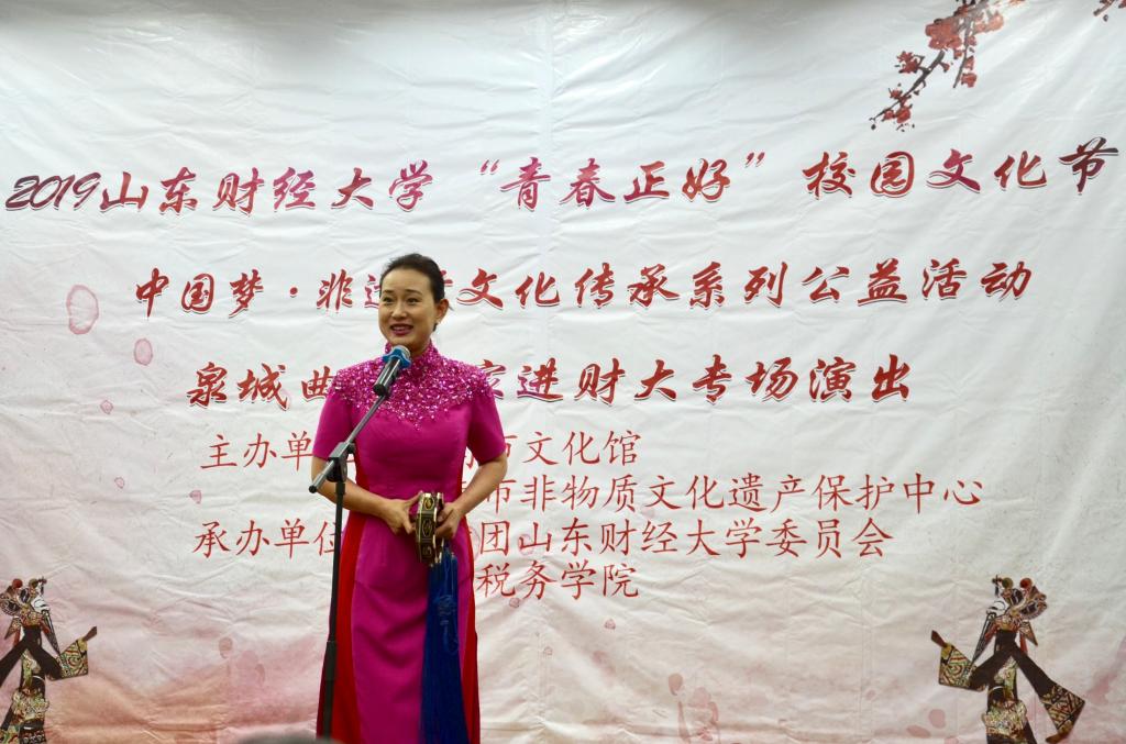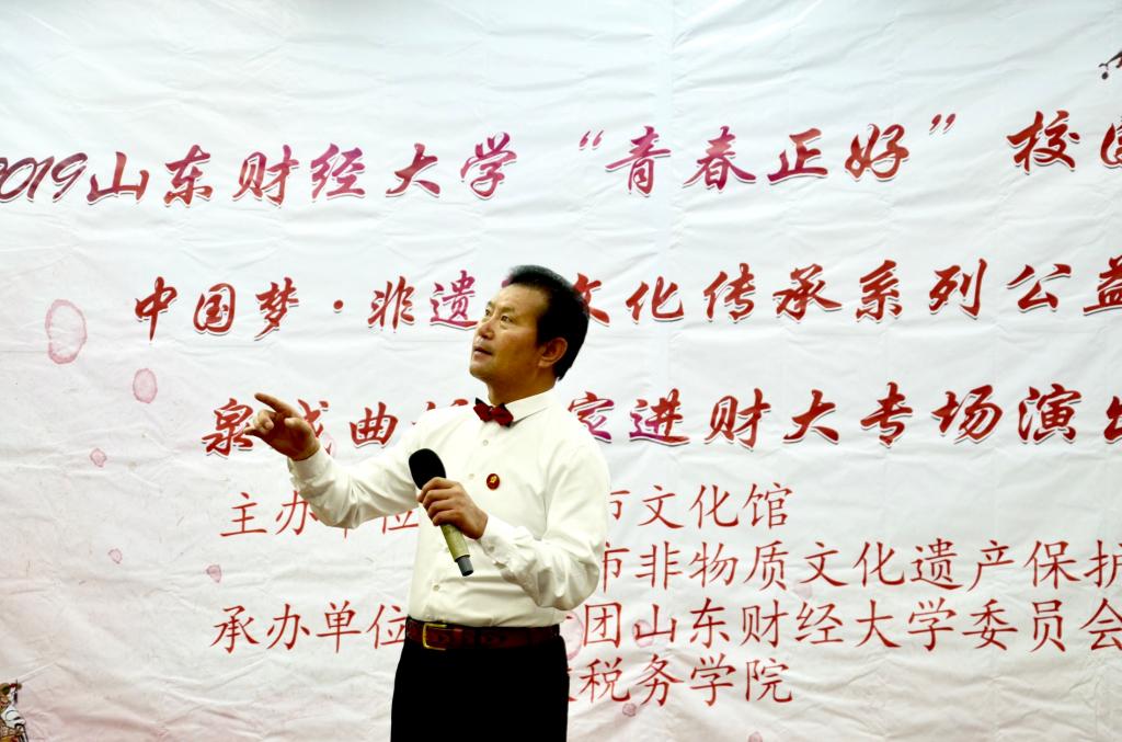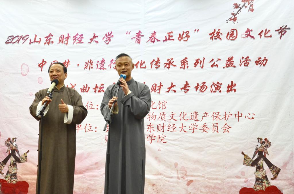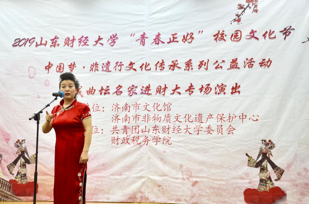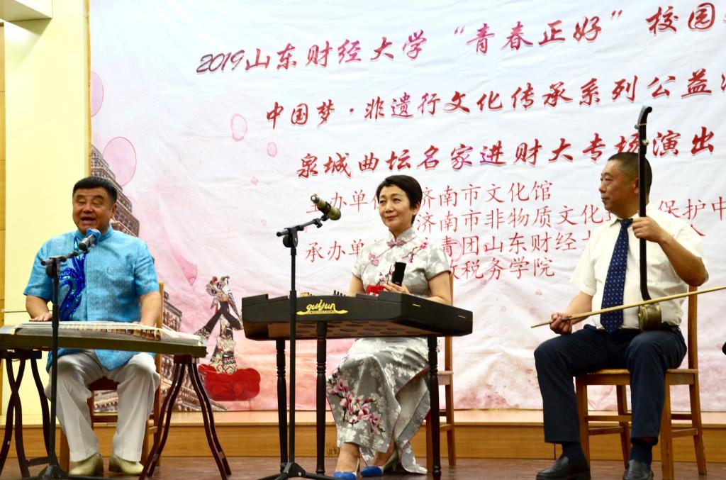 2019 年“青春正好”校园文化节暨“中国梦·非遗行”文化传承系列公益活动、泉城曲坛名家进财大专场演出活动于燕山校区第三报告厅圆满举行。本次活动由济南市文化馆、济南市非物质文化遗产保护中心主办,共青团中文a片