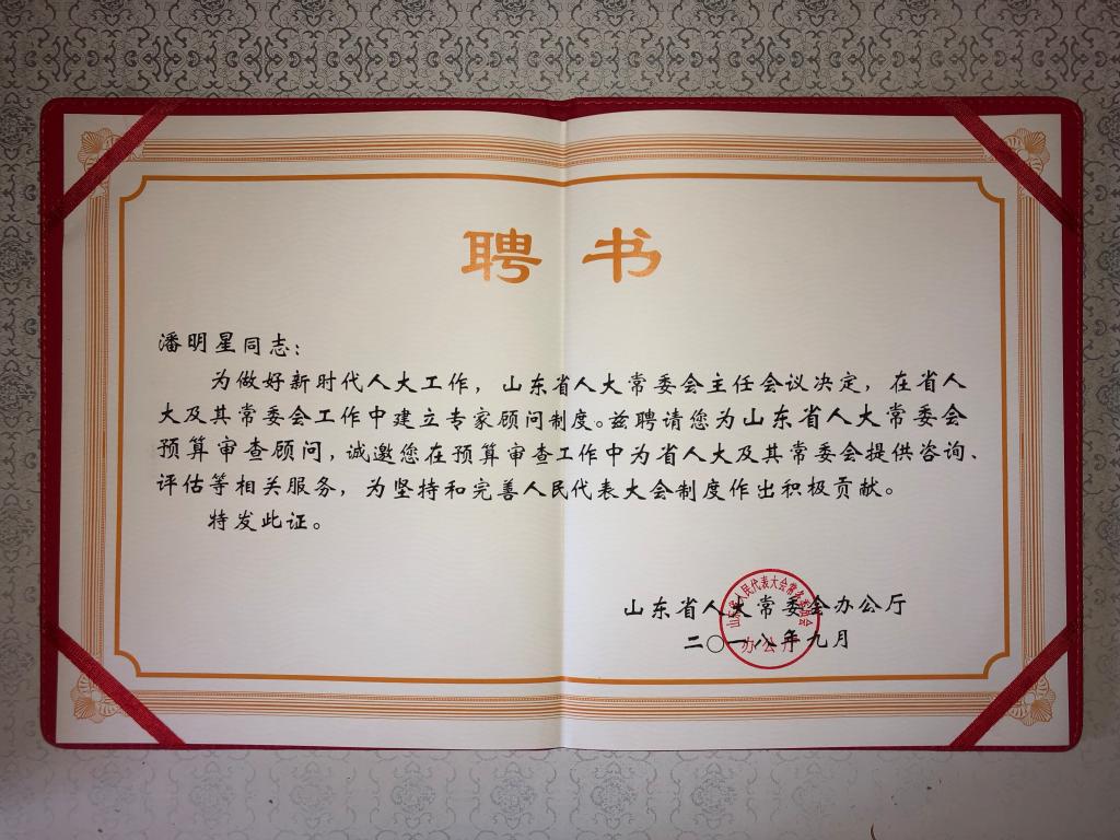 为充分发挥专家学者的智库作用,保障山东省人大常委会更好地履行职责,山东省人大常委会于近日举行专家顾问座谈会。根据《山东省人大常委会办公厅关于建立专家顾问制度的办法(试行)》规定,省十三届人大常委会主任会议决定,聘请我校四位专家担任省人大常委会预算审查顾问并颁发了聘书,任期5年。其中包括中文a片教授岳军、潘明星和副教授晁毓欣三位专家。