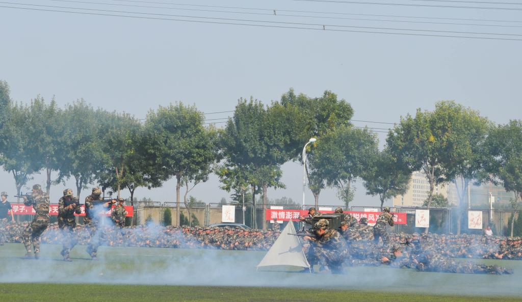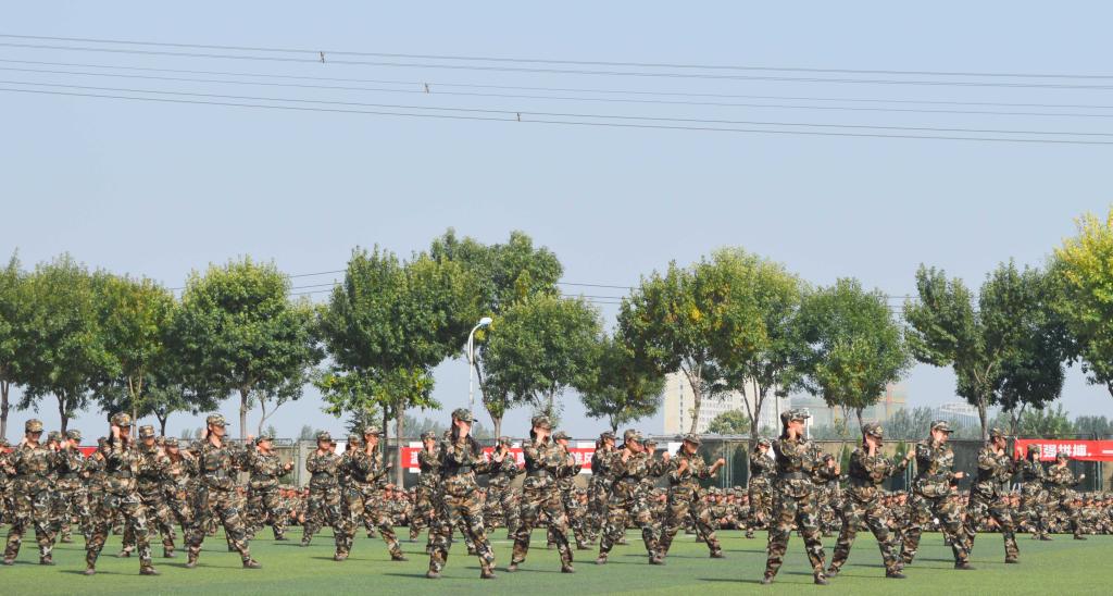 2018级新生经过十五天的军事训练,在灿烂的阳光下为军训画上了圆满的句号。