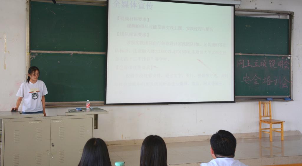 大会伊始,学生会创新实践中心调研部成员为我们从个人主页、项目立项、调研实施、其他注意事项四个方面进行了网上立项说明,步骤简洁、思路清晰。接着,调研部主讲人从全媒体宣传注意事项、成果验收要求、学生校外实践活动安全指南等方面进行了详细介绍,不仅使同学们明确了全媒体宣传和成果验收的注意事项,还引起同学们对校外实践中安全问题的重视。