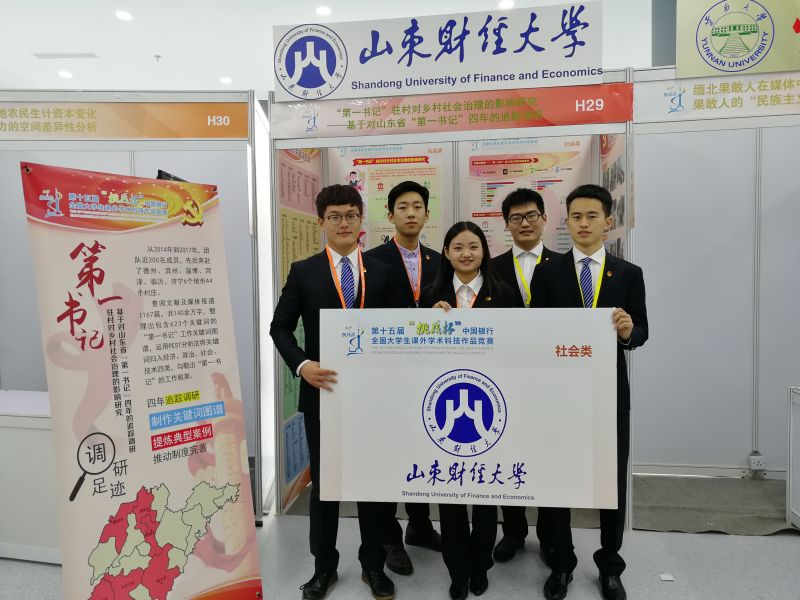 11月18日,由共青团中央、中国科协、教育部、中国社科院、全国学联和上海市政府主办,上海大学承办的第十五届“挑战杯”中国银行全国大学生课外学术科技作品竞赛全国终审决赛在上海大学落下帷幕。我校本科生团队作品《“第一书记”入驻对乡村社会治理的影响——基于对山东省“第一书记”三年的追踪调研》参加全国终审决赛并获三等奖。
