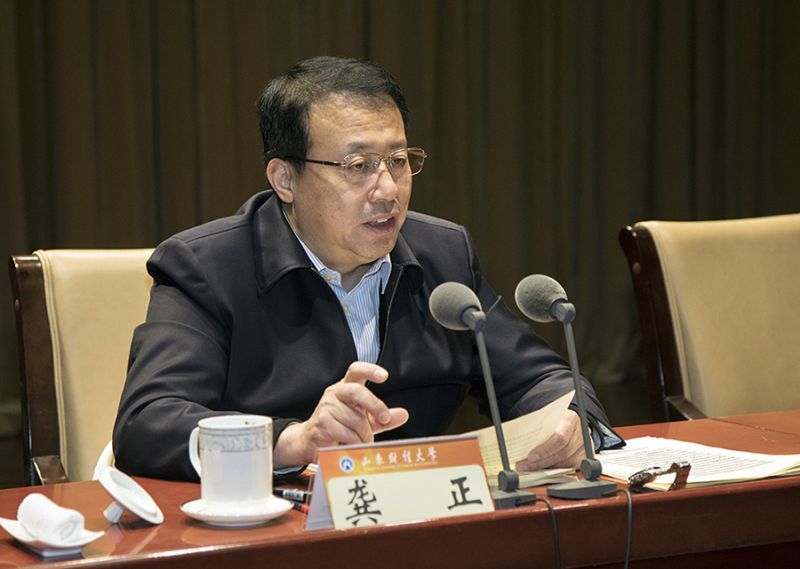 王邵军在主持报告会时说,龚正省长结合山东实际,联系历史与现实、理论与实践、国际和国内,紧紧围绕习近平新时代中国特色社会主义思想这个主线,运用大量数据和生动案例,就党的十九大的鲜明主题、习近平新时代中国特色社会主义思想的丰富内涵等若干方面的重大问题作了全方位、系统性、多角度的阐释和解读,对教师和青年学生提出了殷切希望,给大家上了一堂生动深刻的马克思主义理论课。报告主题突出,内涵丰富,深入浅出,生动形象,站位高,接地气,既有时代的高度,又有理论的深度,更有实践的广度,对于我们科学认识和准确把握党的十九大精神,深入领会习近平新时代中国特色社会主义思想具有重要的指导作用。当前,要结合龚省长报告内容,把学习宣传贯彻党的十九大精神作为首要的头等大事,切实以习近平新时代中国特色社会主义思想武装头脑、指导实践、推动工作,与我校的思想政治工作、综合改革、双一流建设等重点工作紧密结合,推动十九大精神落地生根、开花结果,以全面推进学校内涵式发展的新业绩,为服务山东省新旧动能转换重大工程,服务经济文化强省建设贡献财大力量,谱写财大新篇章。