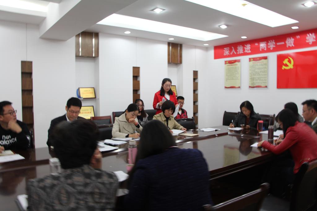 各支部党员骨干做典型发言。首先是财政教工一支部晁毓欣老师、郑华老师;然后是财政教工二支部马恩涛、汪崇金、孟庆平三位老师;然后是税收教工支部高凤勤、郭健、张培青三位老师;办公室支部王丽丽老师;最后是学生支部党员代表。