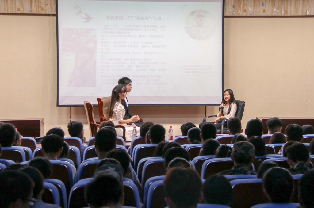 最后,在互动提问环节中,五位主讲人耐心地解答新生困惑。准确的指引、幽默的话语、真挚的祝福赢得在场同学的阵阵掌声。