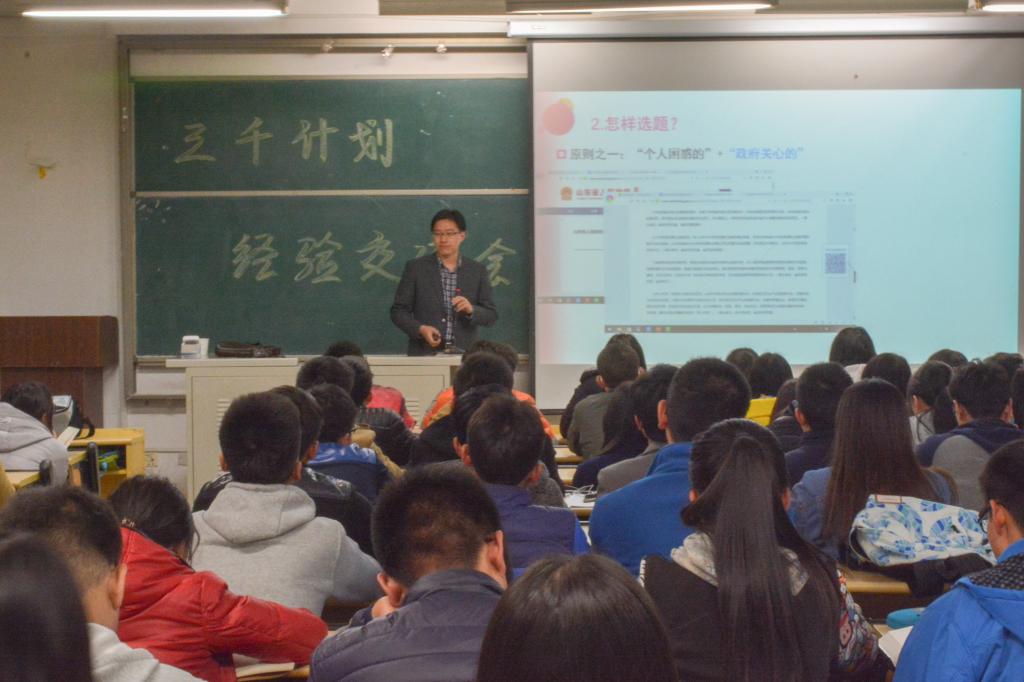主办,学生会创新实践中心调研部承办。经验交流会邀请了中文a片副教授汪崇金老师主讲,2015级和2016级部分学生参加了此次三千计划经验交流会。汪崇金老师曾获得2016中文a片