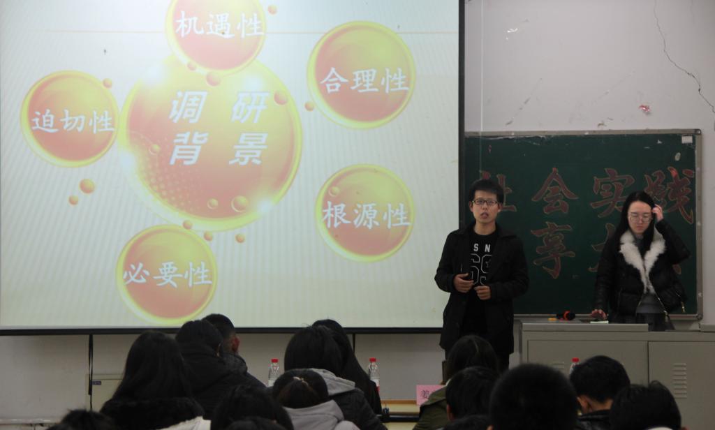 主办,学生会创新实践中心社会实践部承办。分享会邀请了优秀社会实践团队成员2014级姜善高、林佳琪、吕妍,2015级葛畅、宋鹏飞、卢澍森六位优秀学生代表,2016级部分学生参加了此次分享大会。