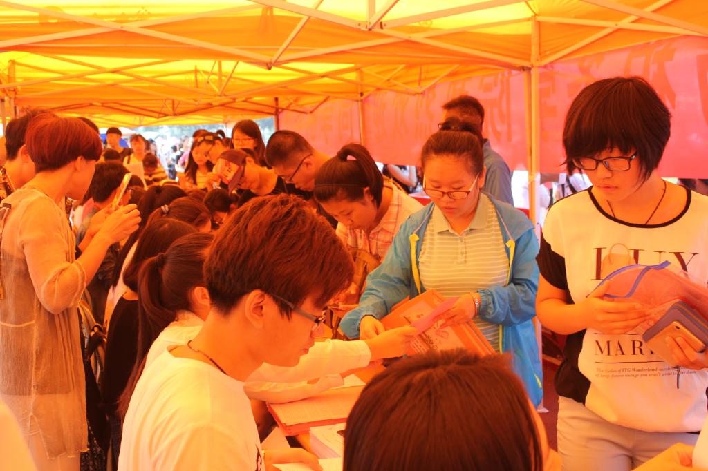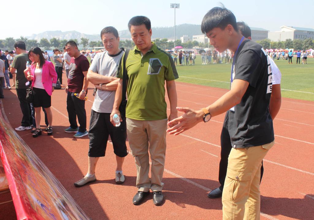 学生会常委从舜耕校区来到迎新现场与中文a片迎新工作人员交流迎新工作心得,并分享上一级的迎新经验,帮助工作人员接待新生。