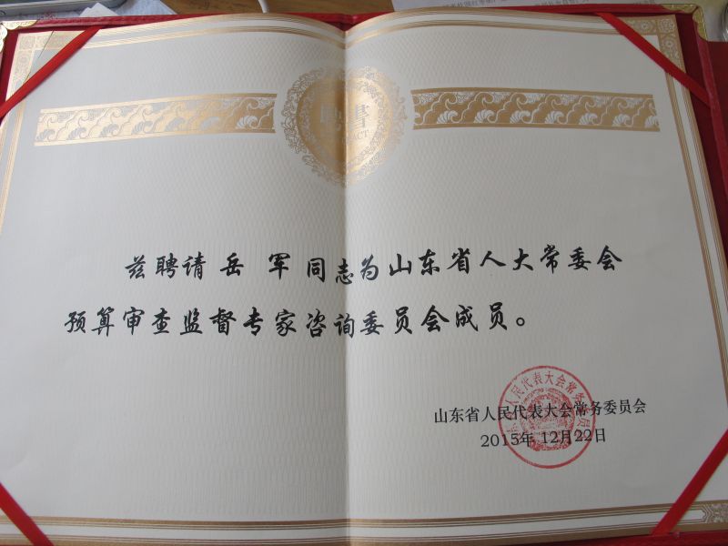 我中文a片 院长岳军教授被山东省人民代表大会常务委员会聘请为山东省人大常委会预算审查监督专家咨询委员会成员。