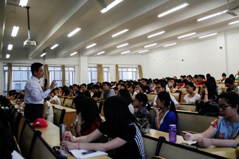 随后,潘教授围绕“考研”、“就业”等热点问题,以贴近大一学生的角度进行规划:完成学业,夯实基础,是大学生涯规划中的最低要求;在此基础上,以个人能力为依托进行二专业的选择;研究生考试是在校大学生的另一更高层次的目标选择。权衡分析“考研究生”、“考公务员”、“考选调生”的利弊关系,潘教授道出自己的感悟,“很多规划都在自己脚下,摆正心态,考研或者就业的最优之选取决于个人”。最后,潘教授希望同学们能根据自己的意愿谨慎选择,合理规划。