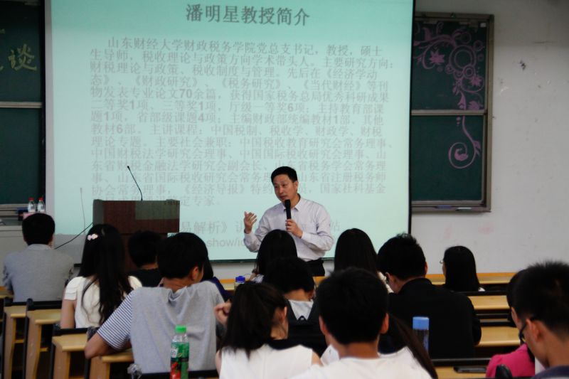王正一老师总结发言:每一个学生都要有自己的大学生涯规划,并努力践行。“不要因为路途遥远,就把自己阻隔在路上”,王老师鼓励学生积极主动完成目标,实现梦想。王老师希望财税学子能够在潘教授的讲座中受益,对自己的大学生涯做出合理规划,实现人生价值。