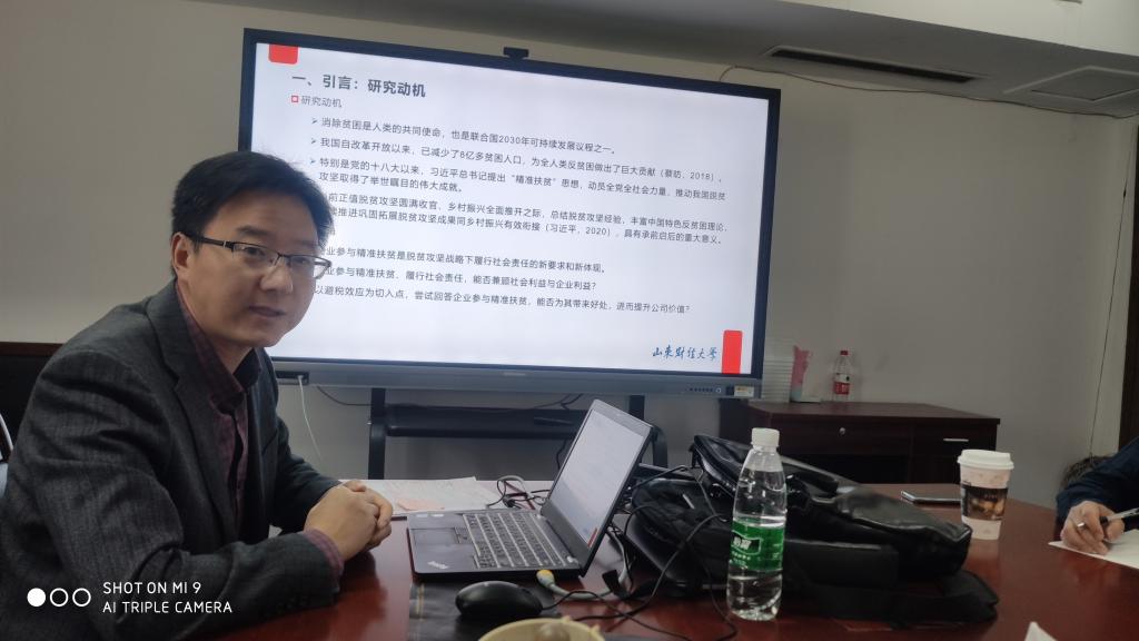 816会议室举行了本学年第3期工作论文研讨会,汪崇金副教授汇报了他的工作论文《精准扶贫、避税效应与公司价值》。