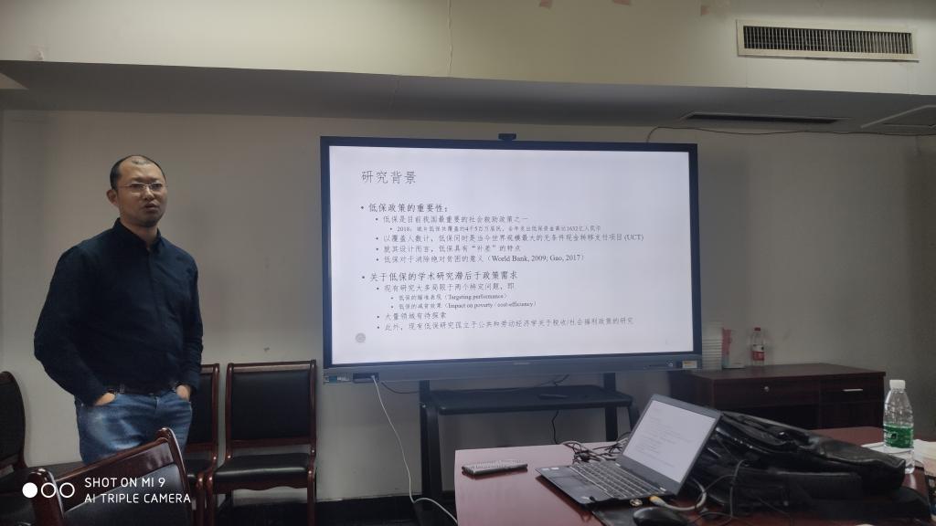 816会议室举行了本学年第4期工作论文研讨会,卢云鹤老师汇报了他的工作论文《中国城镇低保制度福利归宿的再考察:异质性视角》。