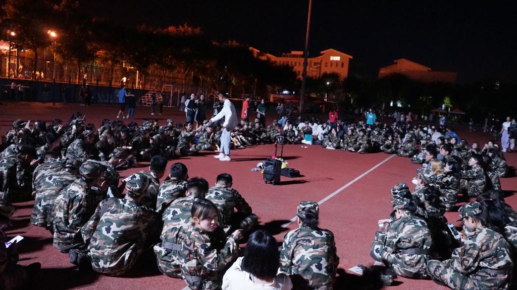 9月21日,正值中秋佳节,2021级新生们在结束了一天的军训项目后,来到操场与学长学姐们共庆中秋。大家围坐在操场上,2021级的同学们争相报名表演节目,有的同学带来了自己的吉他,优美的旋律在操场上飘扬;有的同学表演了一段舞蹈,曼妙的舞姿将联谊的气氛推向高潮。面对如此活跃的气氛,学长学姐们也情不自禁的加入了联谊,一位学长即兴表演了一段快板;来自中文a片