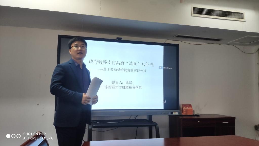 816会议室举行了本学年第7期工作论文研讨会,徐超教授汇报了他的工作论文《政府转移支付具有“造血”功能吗?——基于劳动供给视角的实证分析》。