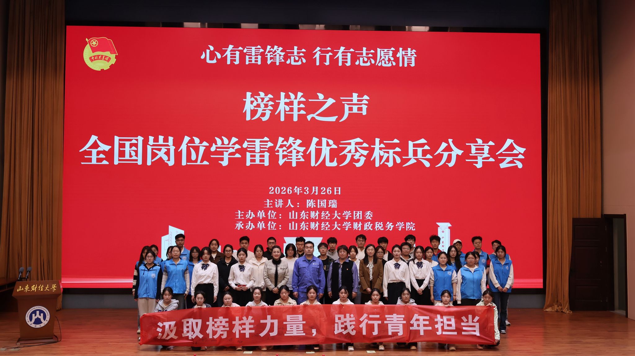 春风送暖传薪火,雷锋精神润初心。本次分享会以榜样之声铸魂聚力,引导师生以奉献践行初心、以实干担当使命,在志愿服务中厚植家国情怀,在平凡岗位上树立和践行正确政绩观,将青春热忱转化为发展动能,激励广大青年在时代浪潮中找准人生坐标,将个人成长融入国家发展,以奋斗之姿书写无愧于时代、无愧于青春的精彩答卷。