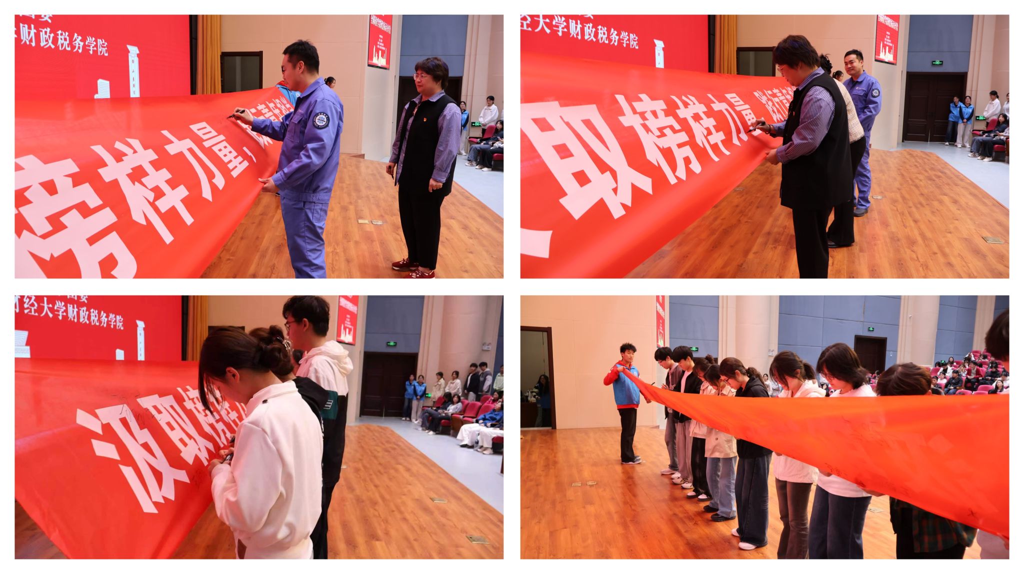 在互动交流环节,同学们踊跃提问,现场气氛热烈,掌声不断,同学们在交流中进一步深化了对正确政绩观的理解——将小我融入大我,在服务人民中实现人生理想,方是青年一代应有的价值追求。活动最后,全体学生发出学雷锋志愿服务倡议,并在主题横幅上郑重签名。