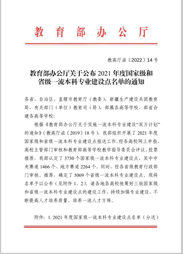 近日,教育部发布《教育部办公厅关于公布2021年度国家级和省级一流本科专业建设点名单的通知》(教高厅函[2022]14号),中文a片税收学专业入选2021年度国家级一流本科专业建设点。至此,中文a片财政学与税收学两个本科专业全部入选国家级一流本科专业建设点,专业建设再次取得重要突破, 为中文a片