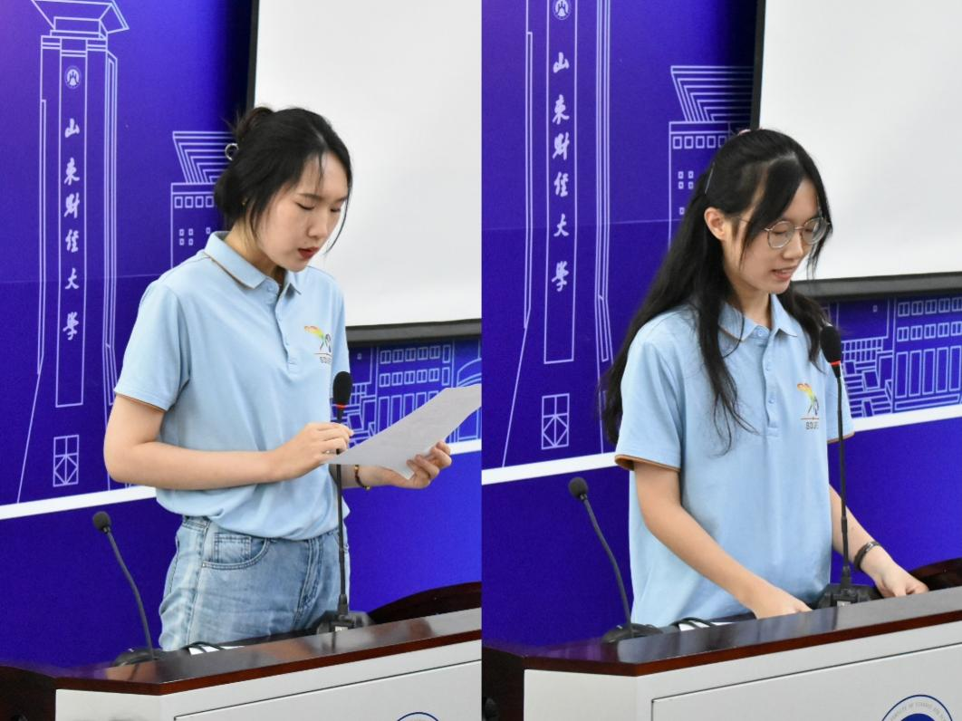 在校生代表2022级财政学学硕孙晓桐同学勉励新生们敢于创新,积极参与社会实践,做好团队协作工作。新生代表2023级税务专硕王博同学分别从树立良好价值观、夯实专业基础、开拓创新三个方面鼓舞同学们找寻自我,表达了对未来读研之旅的憧憬。