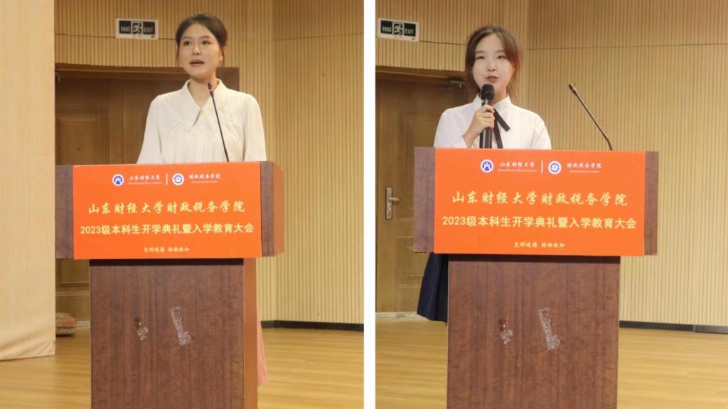 2021级张娜作为老生代表在发言中对新同学的到来表示欢迎,她结合自己的大学生活,建议新生在大学中确定目标,坚持学习,培养能力、锻炼自我,珍惜时间。刘子琳代表2023级全体新生表达了初入学的激动心情,她表示,作为大一新生,定会坚守初心,志存高远,砥砺奋进,锐意进取,拒绝平庸,成为更好的自己。