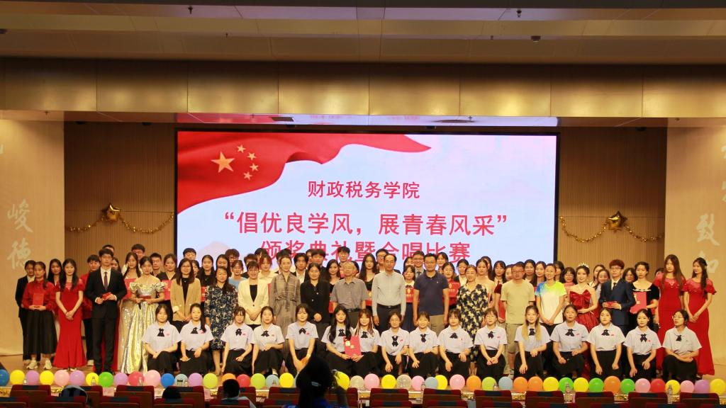 美好未来的衷心祝愿。经过激烈角逐,2023级财政学类四班、2023级财政学类五班荣获一等奖,2023级财政学类三班、2023级税收学一班、2023级税收学二班荣获二等奖,2023级财政学类一班、2023级财政学类二班、2023级财政学类六班荣获三等奖。古丽孜热 · 阿合买提、甄真、程子萱、吕馨雨、毛嘉仪荣获最佳指挥奖。李姿坤、董文玉、王迎阳、李籽娴、宫卓宇、田欣冉、王怡冰、范靖旋、蓝芮芮荣获最佳领唱奖。