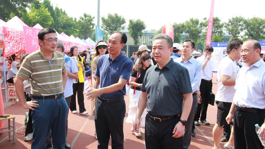 党委书记刘波,院长李森,副书记张代宝、滕晖在圣井校区现场指导迎新工作。