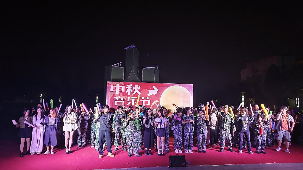 在互动环节,新生们踊跃登台,带来了一场场精彩绝伦的视觉盛宴。他们用自己的才艺和勇气、创意与才华,尽情展现着青春的风采。他们的歌声清澈而富有感染力,舞蹈充满朝气与活力,为中秋佳节增添了一抹璀璨夺目的绚丽色彩。幽默风趣的小品则让观众捧腹大笑,纷纷鼓掌欢呼。新生们为这场音乐节营造了更加热闹的氛围,为这个中秋佳节增添了无数的欢乐和感动。音乐节最后,全体人员共同唱响了《平凡之路》,本次中秋音乐节圆满落下帷幕。