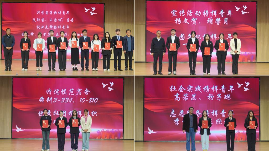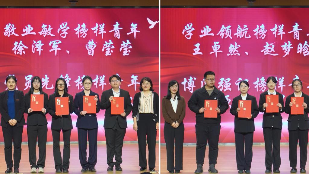 榜样引领青春路,砥砺奋进正当时。在五四榜样青年颁奖典礼上,领导、老师们为在学术科研、志愿服务、社会实践等领域表现突出的多名优秀青年学子进行颁奖。
