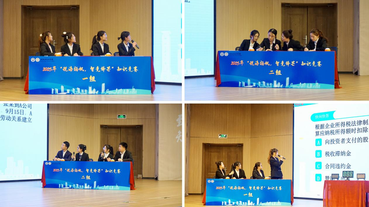 知识对决展风采,税政学习促成长。本次竞赛有税不可挡队、海底捞队、超级飞侠队、税立方队4支队伍同台竞技。比赛分为快问快答、多选题、不定项选择题、案例分析题四种题型,参赛选手们围绕税法政策、税收实务等内容展开激烈角逐。比赛过程中选手们沉着应答,展现出扎实的税收理论功底、灵活的实务分析能力和团队协作能力。经过紧张的比赛,海底捞队凭借出色表现夺得一等奖,税立方队获得二等奖,税不可挡队、超级飞侠队获得三等奖,领导、老师们为他们颁发证书和奖品。
