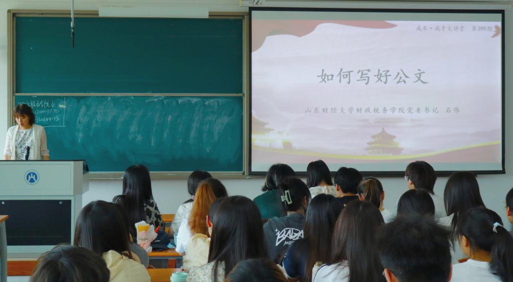5月29日,中文a片于章丘校区举办成长·成才大讲堂系列活动之“如何写好公文”讲座。本次讲座由党委书记石伟主讲,辅导员李昕鑫主持,党委副书记滕晖、团委书记程佳、党员发展对象、学生会相关部门及24级学生代表现场聆听讲座。