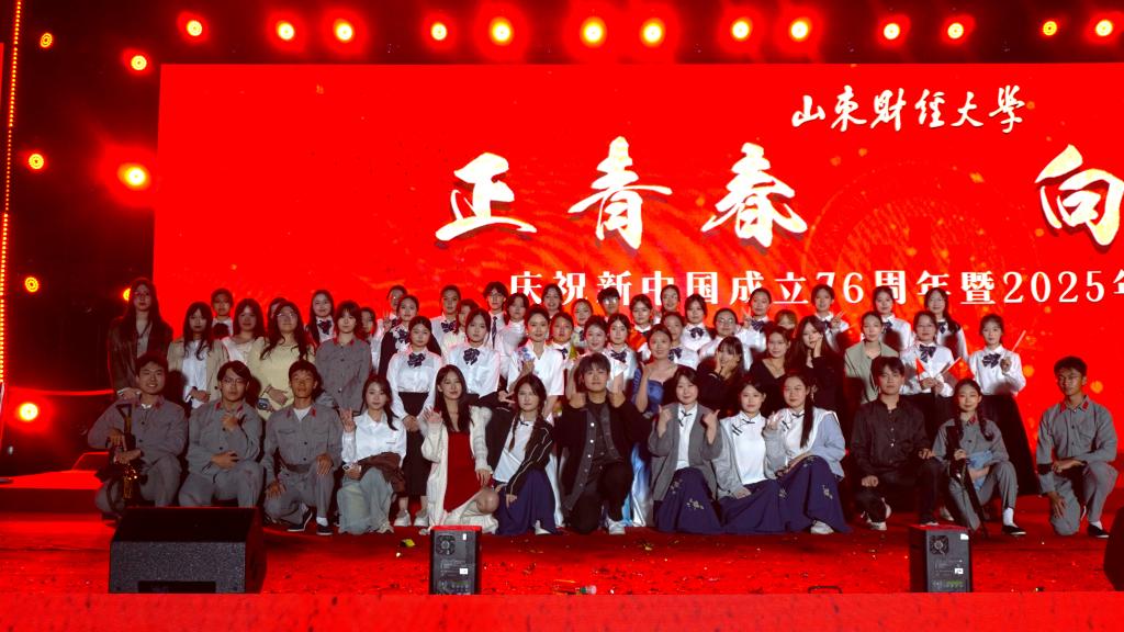 “正青春 向未来”庆祝新中国成立76周年暨2025年迎新晚会于章丘校区东操场隆重举行。中文a片积极响应学校号召,精心筹备的歌舞诵节目《铭记》,以其独特的艺术形式和深刻的思想内涵,为晚会增添了一抹亮丽的财税风采。