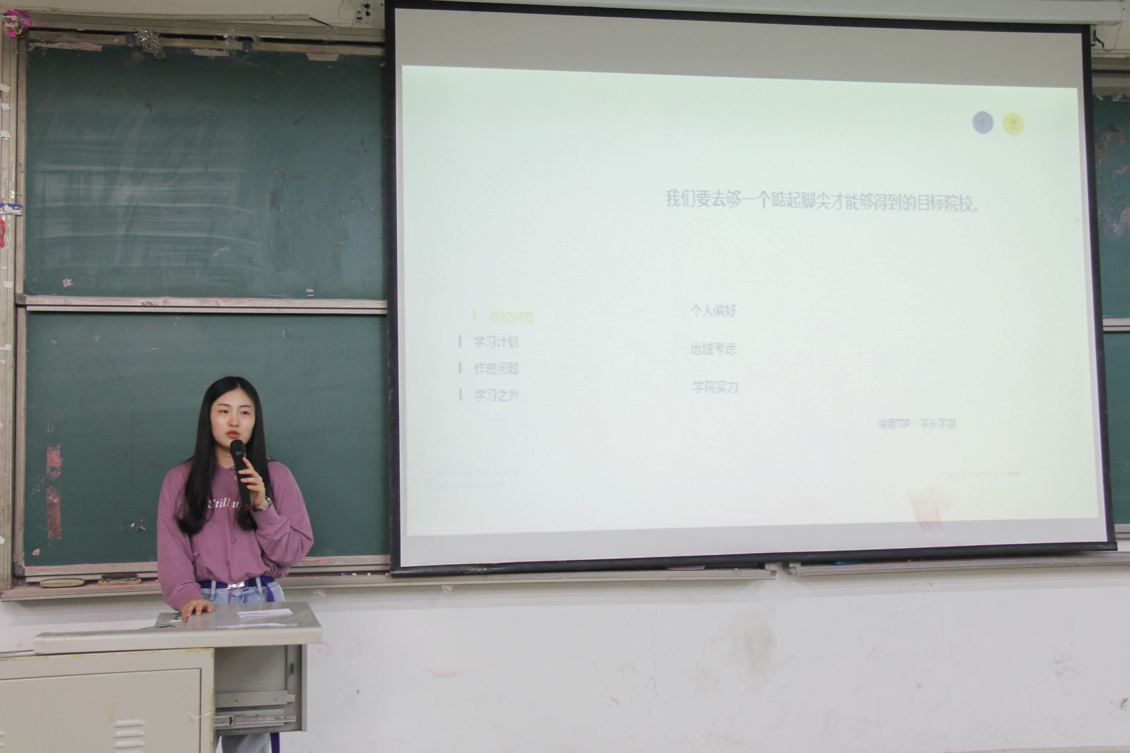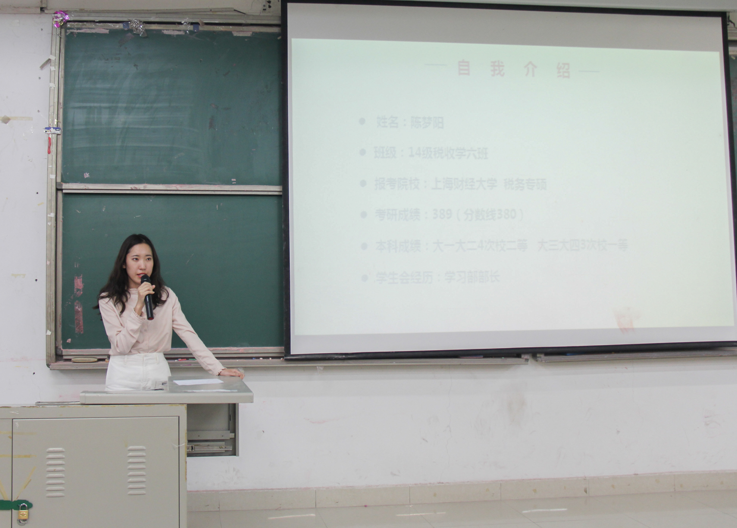 在圣井校区交流会中,首先由考取上海财经大学税务专硕的陈梦阳与大家分享经验,她建议同学们做好前期准备,但也要注意劳逸结合,掌握自己的节奏。