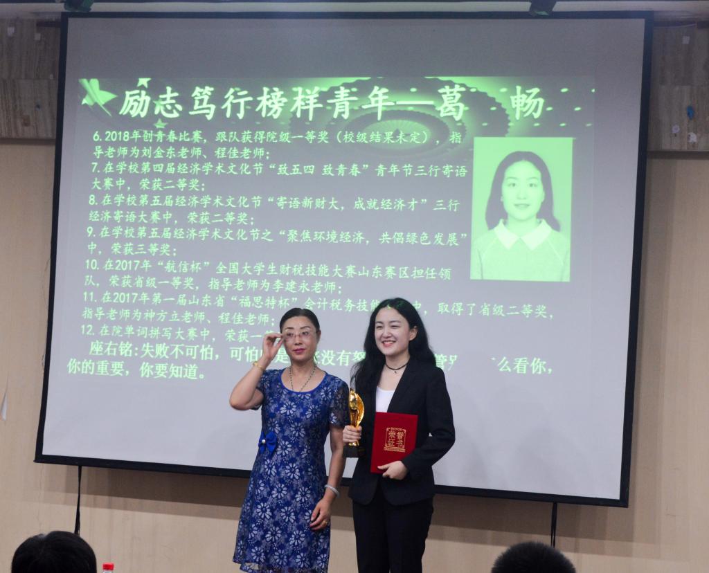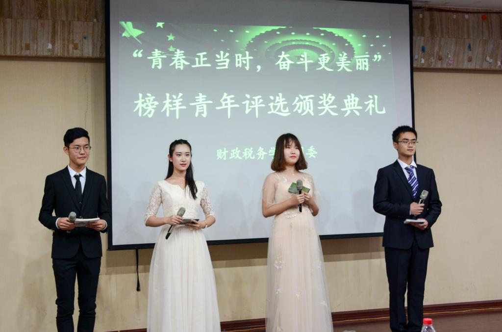 接着,“升学留学榜样青年”奖项由2015级财政学硕士孙成芳和2014级税收学六班刘晨阳获得,她们带着新时代青年的希望,靠自己辛勤的劳动换来优异的成绩。她们学有品位,学有成就,用行动践行了自己的诺言。最后一个奖项是“就业先锋榜样青年”奖项,2014级财政学三班的胡钦雷获得了 “就业先锋榜样青年”奖项。他坚信“他山之石,可以攻玉”,他用实际行动证明了他所奉行的宗旨“选好岗,稳住心,做自己”,用学识与素养打造辉煌的人生。