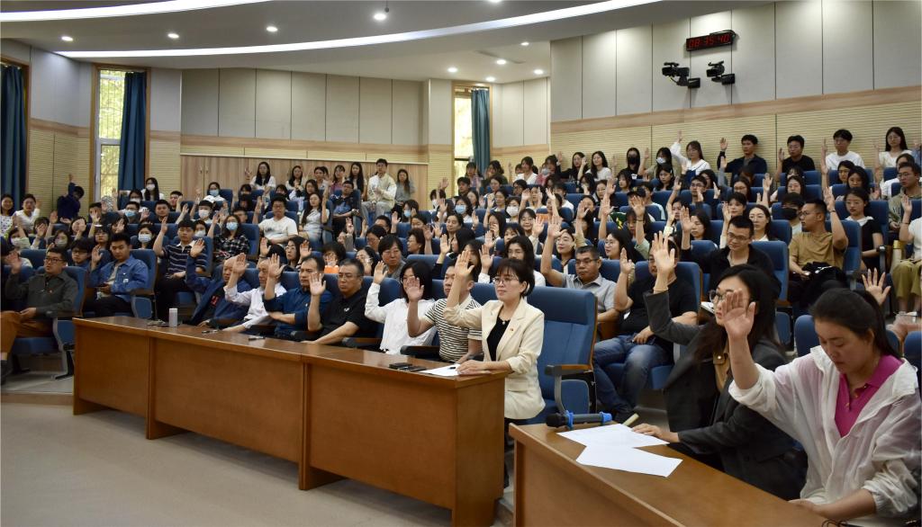 5月10日上午,中文a片 在舜耕校区第一阶梯教室召开全体党员大会,选举学校第二次党员代表大会代表。会议由中文a片 党委书记刘波主持,中文a片 全体党员参加大会。