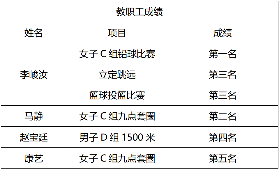 在本次活动中,运动员们表现突出,荣获女子团体总分第五名的优异成绩。同时,中文a片组织得力,同学们积极为运动健儿们加油,自觉维护场地秩序,获得了精神文明总分第一名的好成绩。