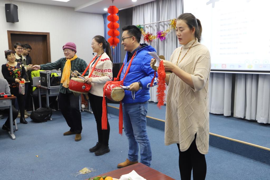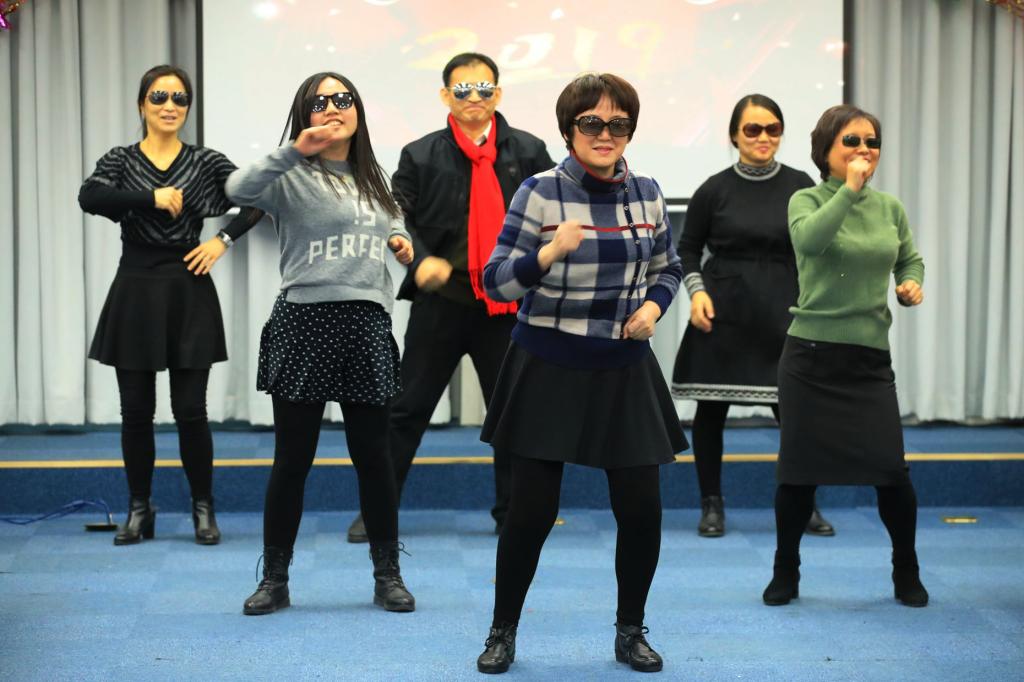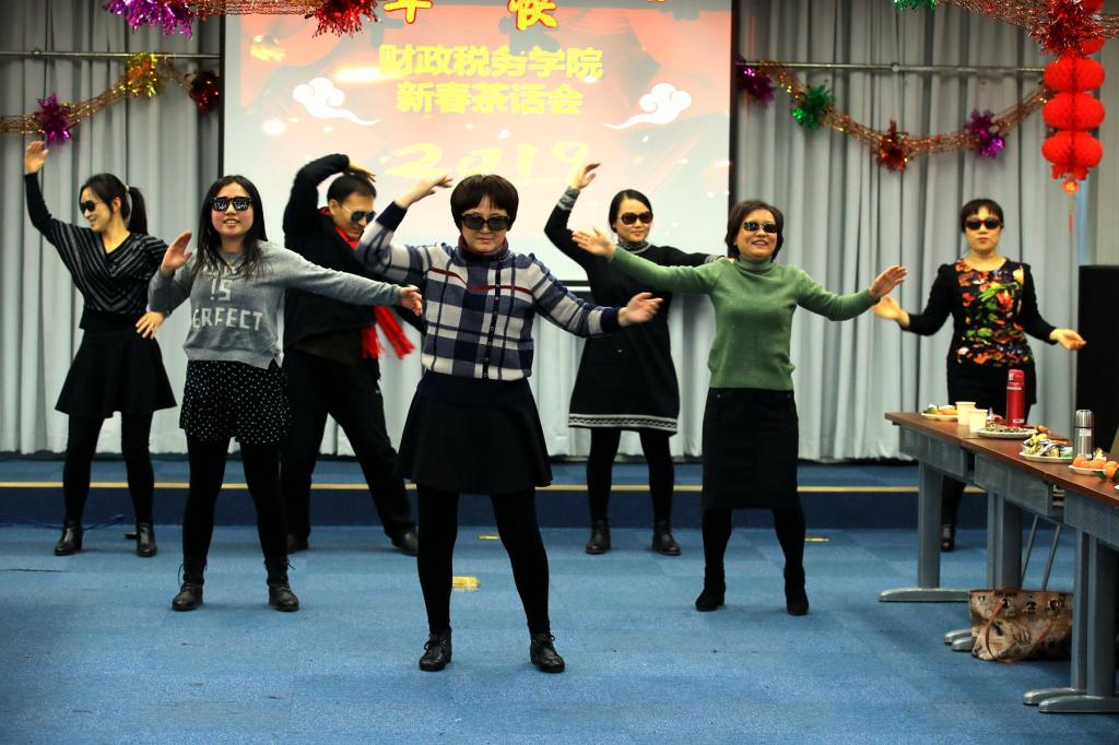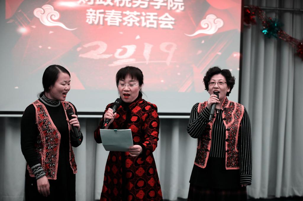 茶话会在赵宝廷老师和张琳老师领舞的“社会摇”欢快节奏中拉开帷幕。随后,老师们自导自演,节目表演精彩纷呈,高潮迭起。观众席上掌声、笑声、欢呼声连绵不绝。文艺范儿武普照老师独唱《成都》、辅导员李建永老师独唱《一天到晚游泳的鱼》,办公室小合唱《呼伦贝尔大草原》。马恩涛副院长2018年教学科研都获得了学校的奖励,迎春会上独唱了2018年最新最火的网络歌曲《沙漠骆驼》!