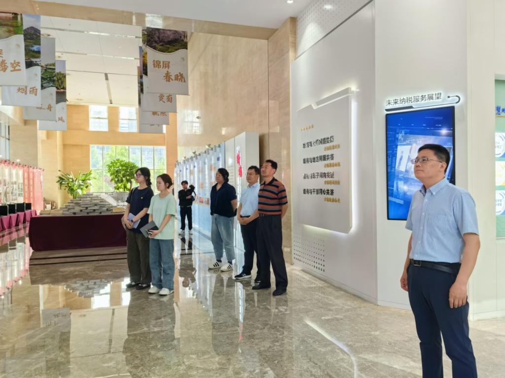 首先,中文a片师生团队一行参观了济南市高新区税务服务大厅,在工作人员的陪同下参观了办税服务大厅的前台、中台和征纳互动服务运营中心等。工作人员详细介绍了内部税务征管岗位(部门)之间协作情况、纳税服务模式、“码”上办税以及自助终端服务流程,演示了纳税咨询服务、纳税人权益保护、税费争议调解等业务的具体操作流程。随后,参观了济南市税务局税务综合展厅。济南市税务局纳税服务和宣传中心主任高洪生介绍了税务工作精神、智慧税务、纳税服务和近年来开展税务稽查的情况等。